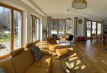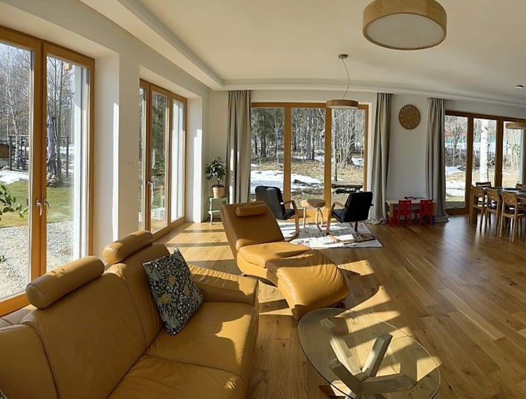 Ideálne miesto pre rodinnú dovolenku, veľa priestoru a všetko dobre vybavené. Veľké okná na prízemí dávajú pocit spojenia s prírodou a skvelým bonusom je krb.